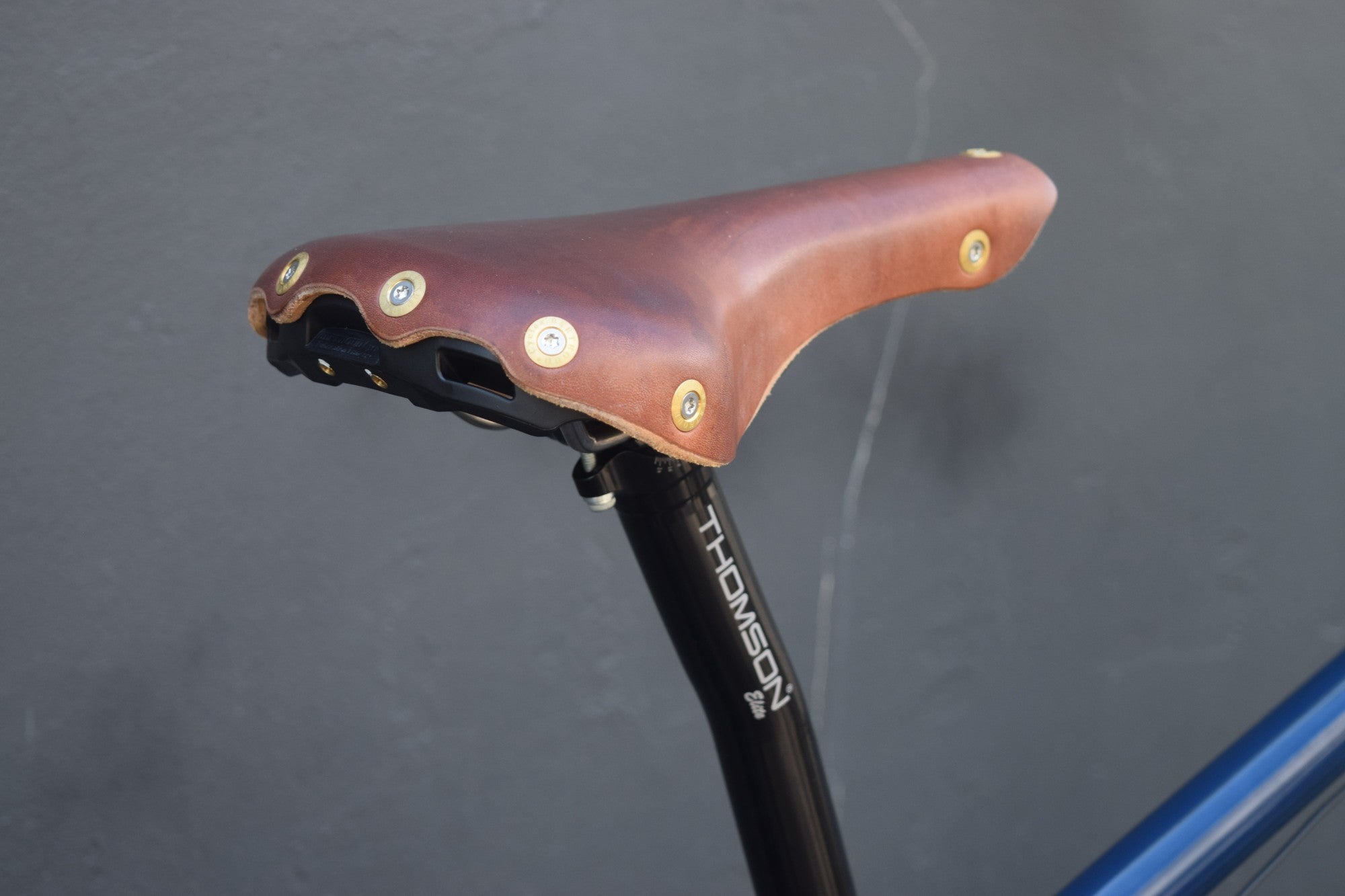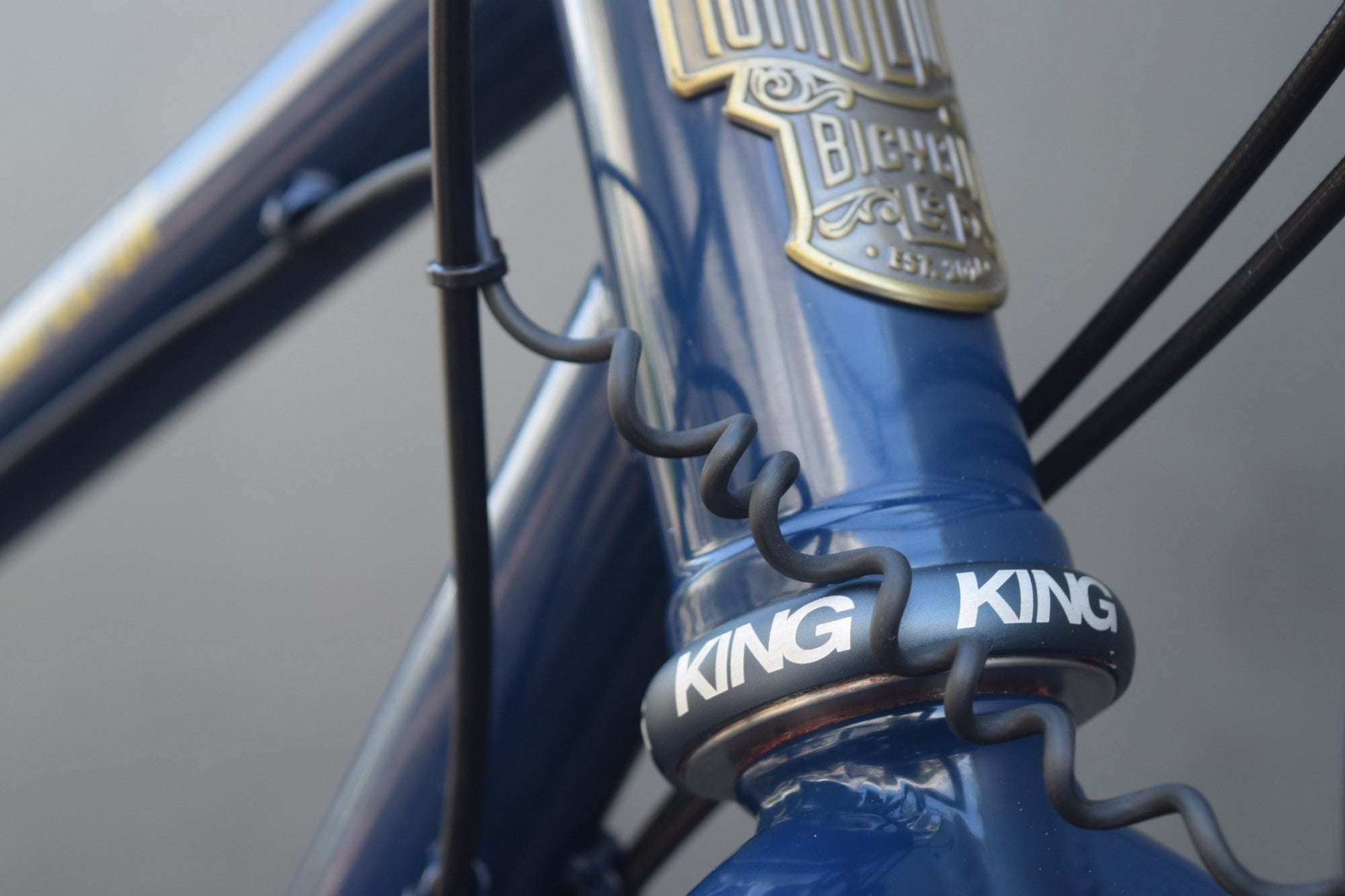 The Prospector is a timeless and rugged expedition mountain touring bike, designed around the stalwart Rohloff Speedhub drivetrain. It’s a bike designed to be reliable, tough and field serviceable in the harshest of conditions. Andrew's build is no different. It's specced with a Rohloff Speedhub, a 14 speed internally geared drivetrain that has proven itself to be supremely dependable and capable. Cork Ergon Grips for comfort, front and rear racks, and a Dynamo setup. A perfect design for long distance, gritty, mountain touring and bikepacking.