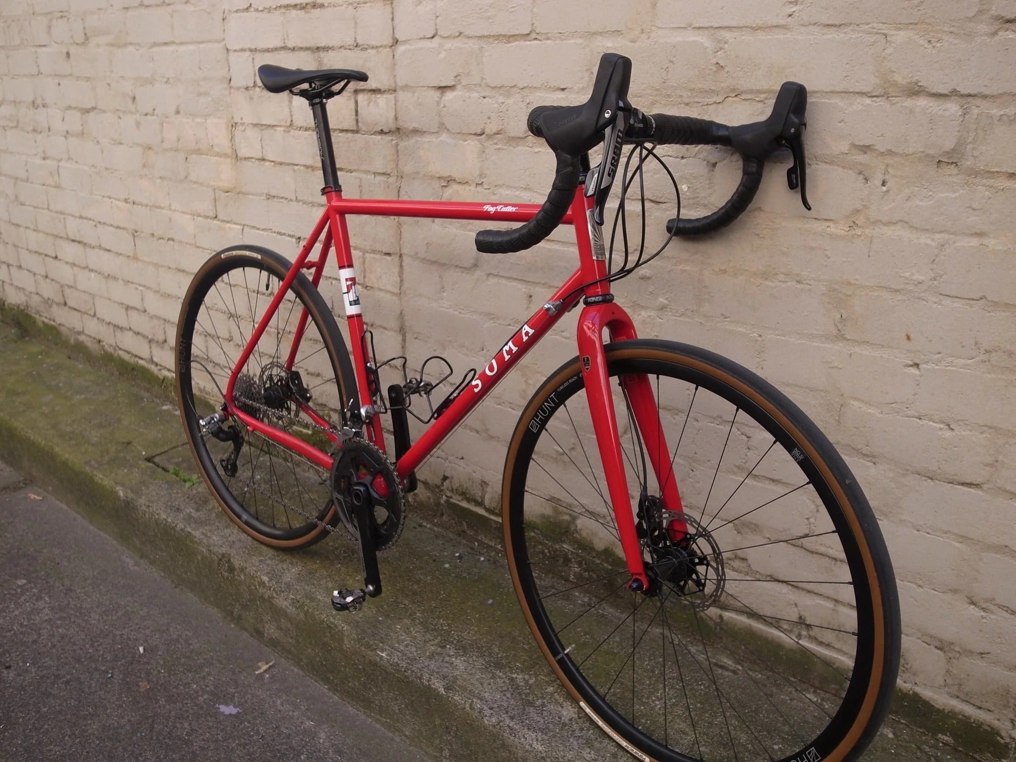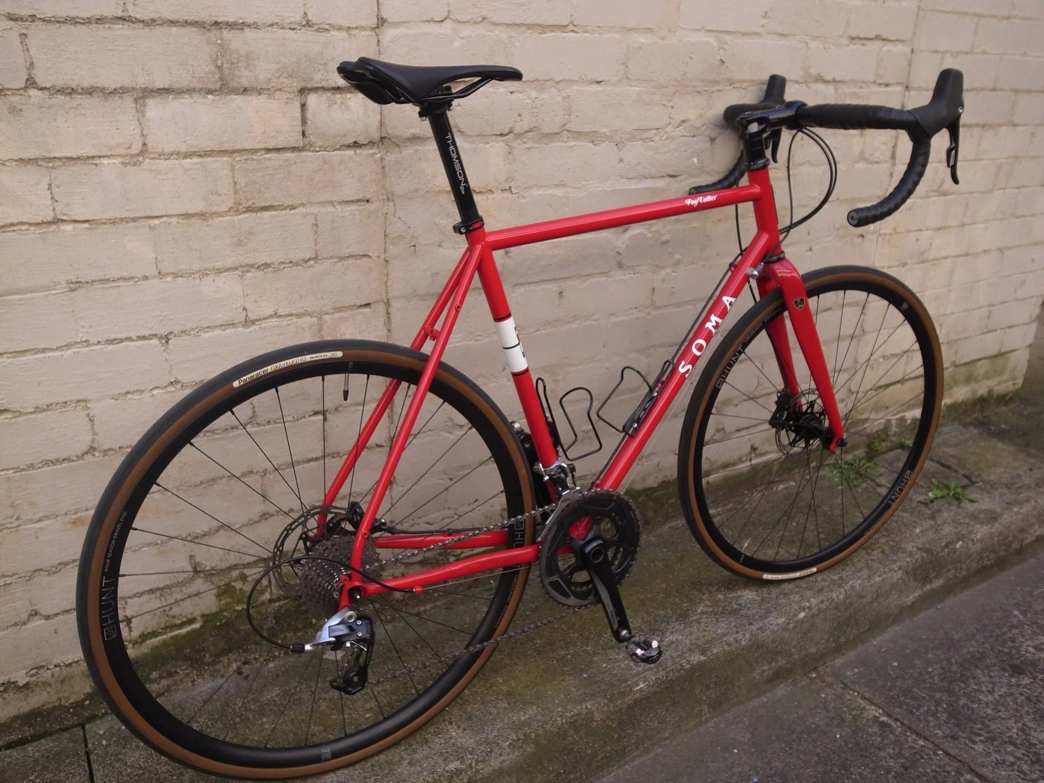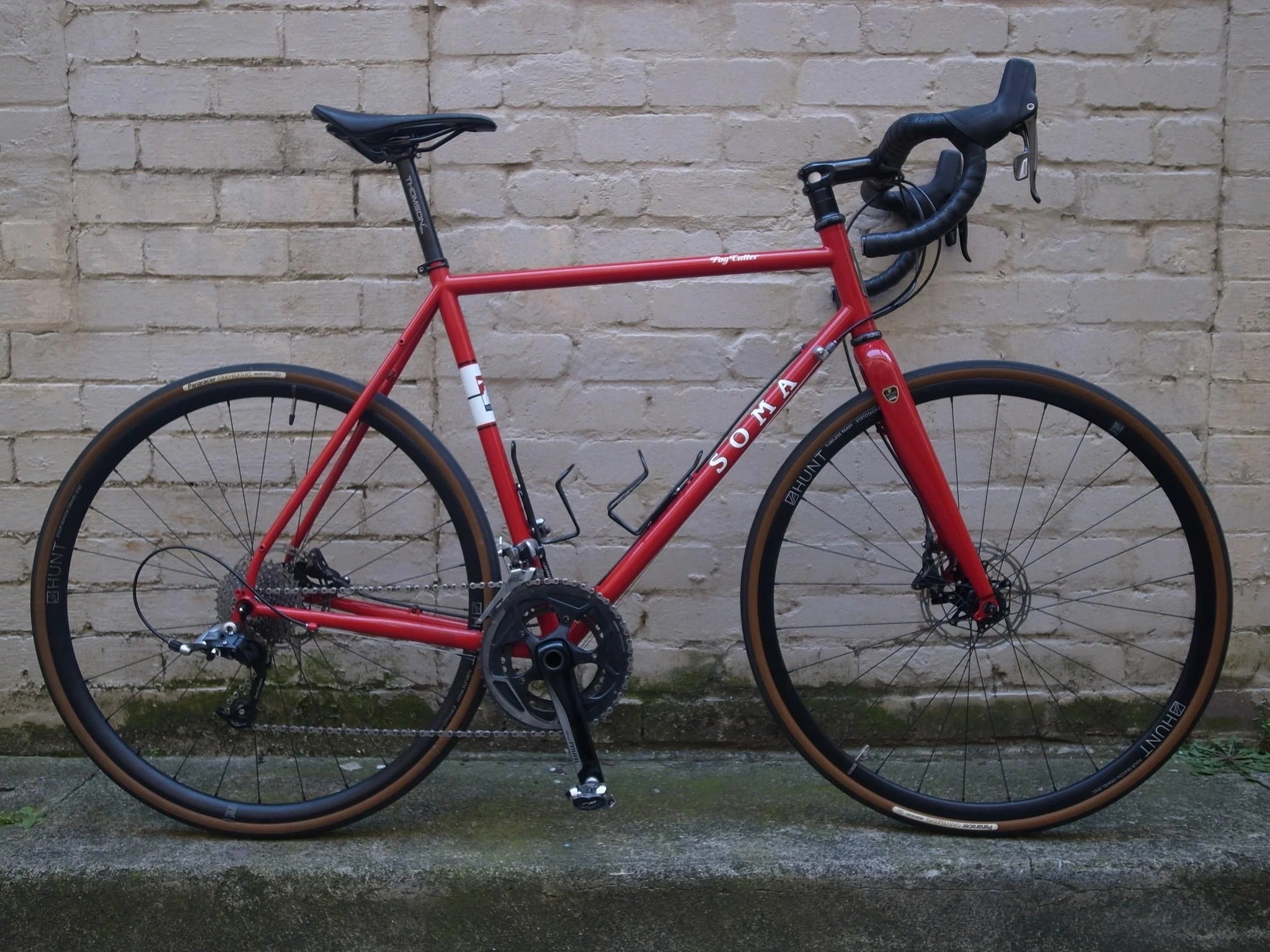 Blending classic road styling with modern performance, this Soma Fog Cutter features a SRAM Rival 2x11 drivetrain with hydraulic disc brakes for confident stopping power. Panaracer GravelKings on Hunt wheels provide all-road capability, while premium touches like a Chris King headset and Thomson cockpit deliver smooth, dialled performance. Finished with Velo Orange Grand Cru pedals for a refined ride feel.