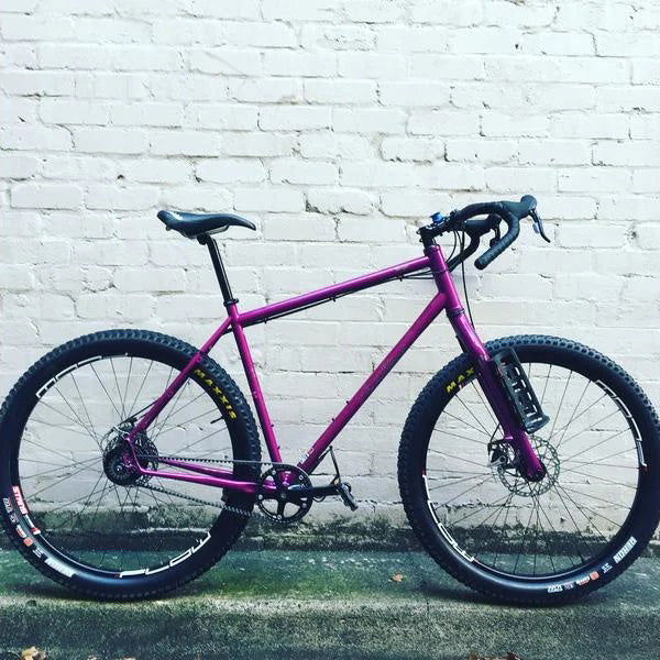 Purpose-built for off-road touring and expedition riding, this Salsa Fargo features a Gates belt drive with Rohloff hub, controlled via SRAM Apex shifters and a Gebla Rohbox for smooth, intuitive shifting. TRP Spyre brakes provide reliable stopping power, while a SON dynamo hub and Salsa Woodchipper bars complete this ultra-capable adventure setup.