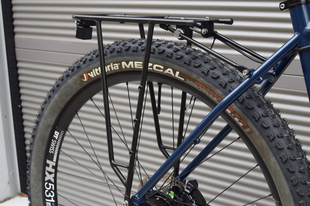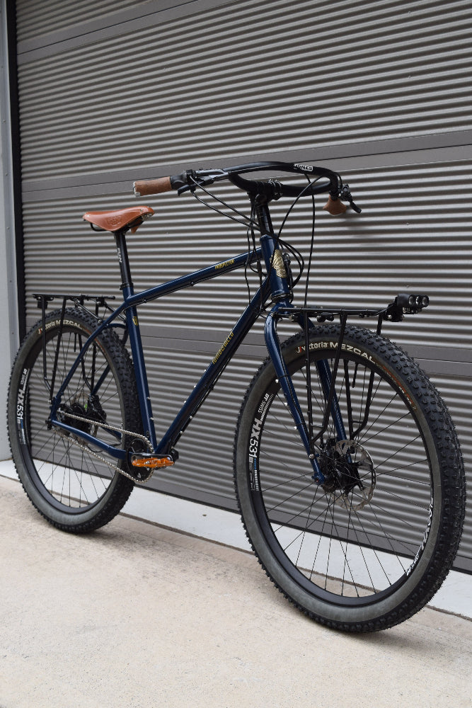 This Munda Biddi-ready build has some neat tricks up its sleeve. In addition to the brilliant Rohloff 14-speed drivetrain, the bike uses Shimano's newest XT M8220 brakes, which set a new benchmark for precise and consistent modulation and braking power. A number of smart and beautiful touches elevate this stunning build, including a custom DT Swiss wheelset, Jones bars, a full K-Lite setup, and a Brooks saddle.
