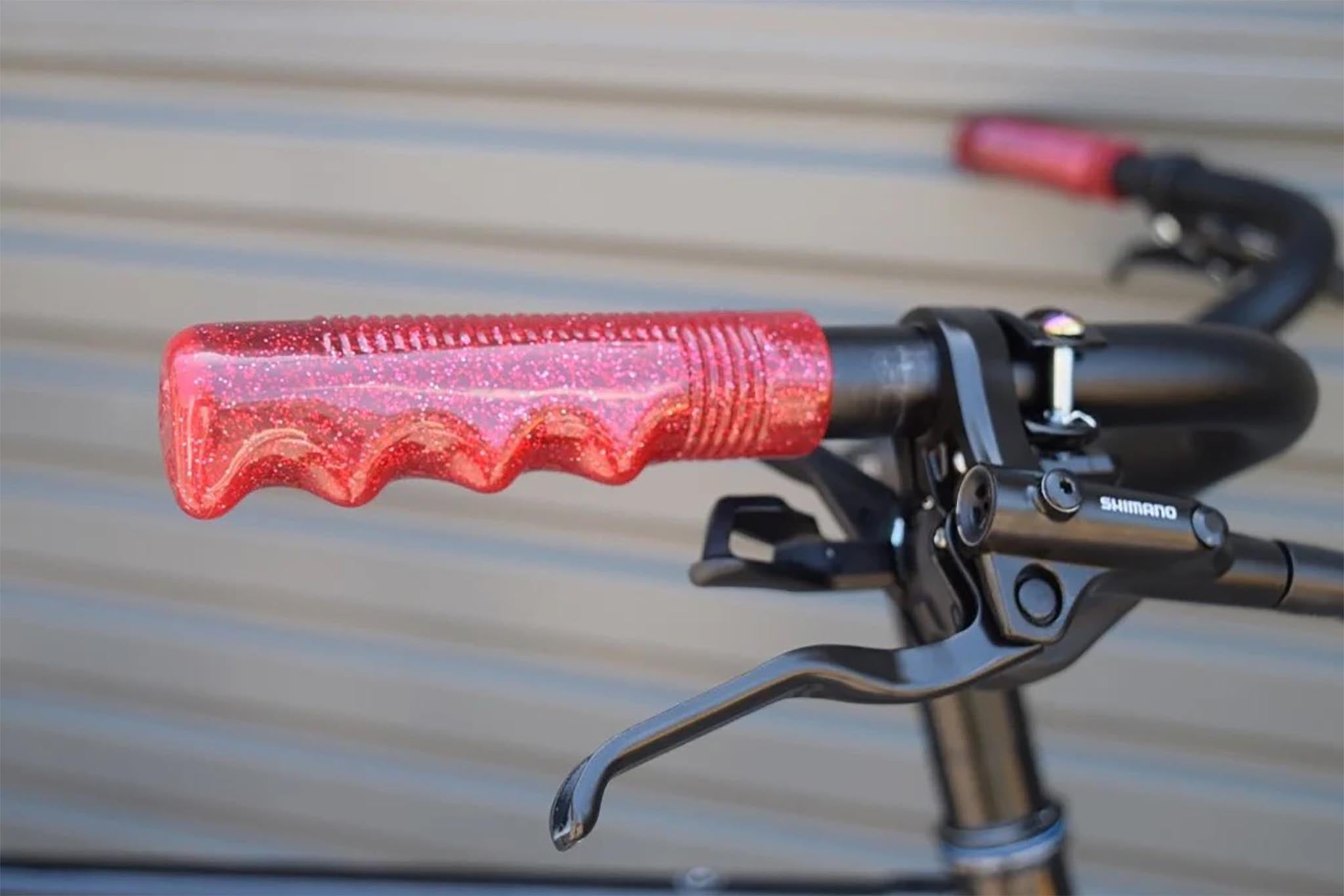 Plastic grips, sturdy rack and tough wheels (and some red accents), this bike has been the result of trial and error from previous bikes, we are pretty sure Mathias is going to have a great time with it.