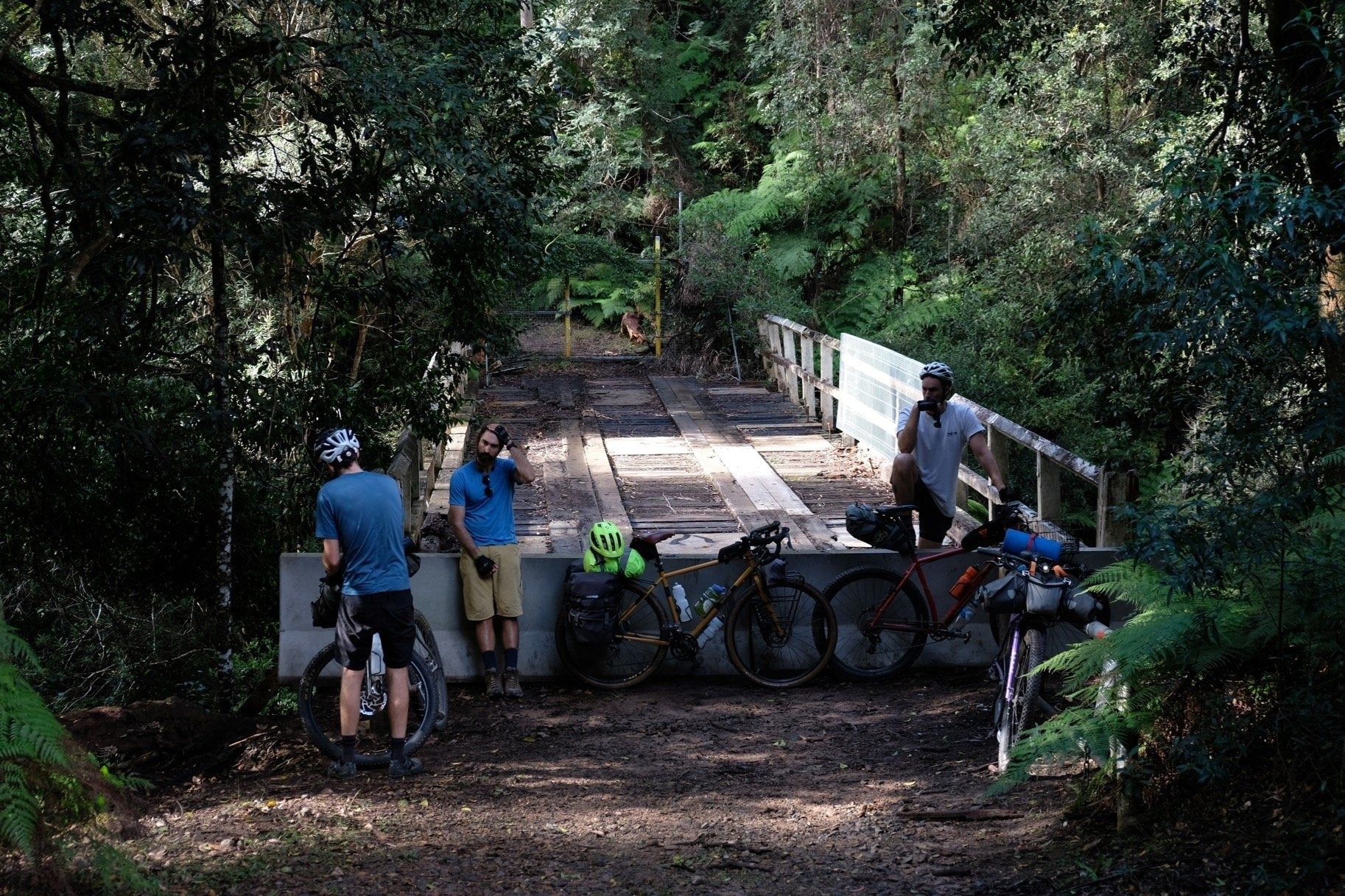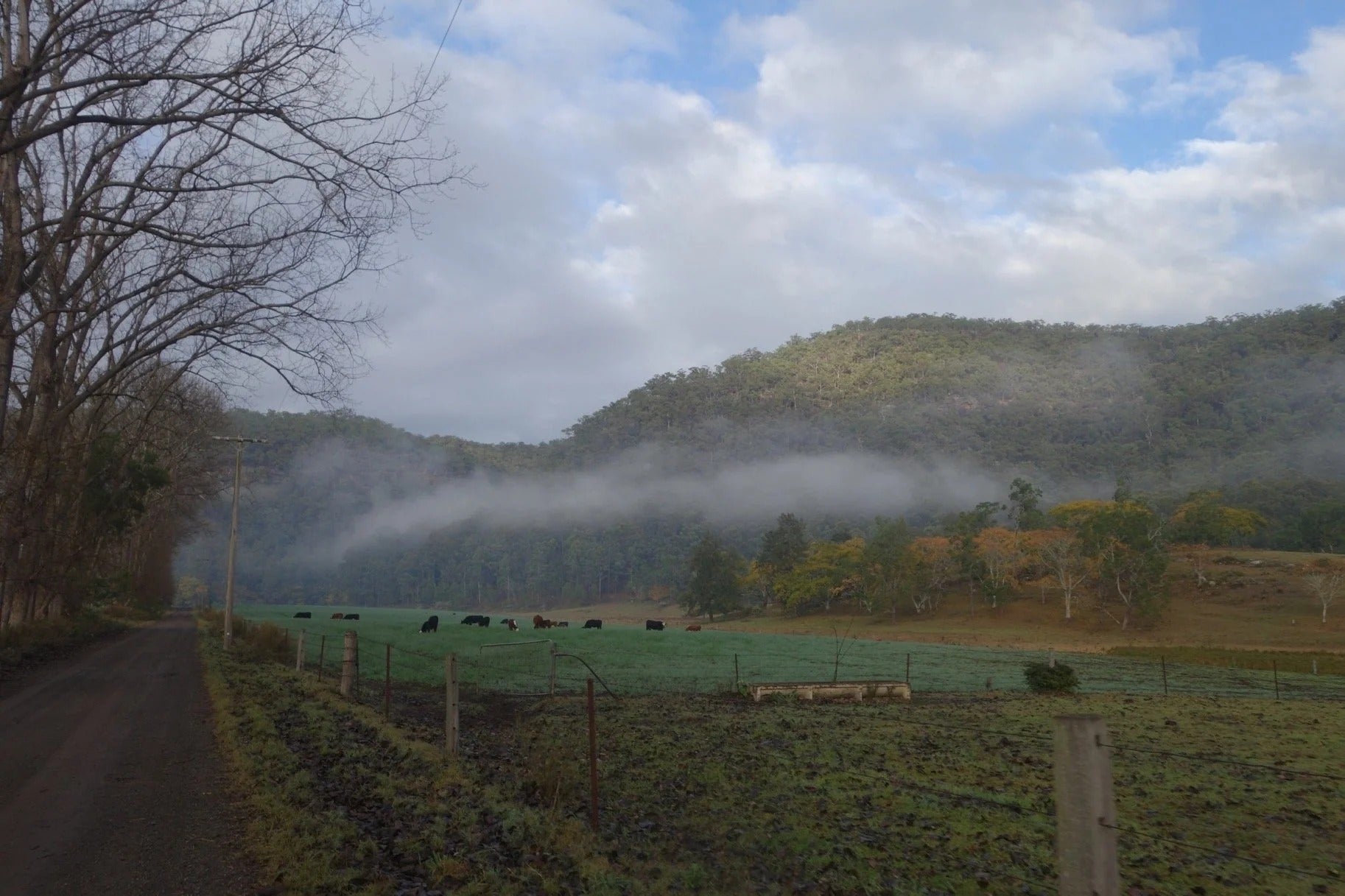 On the afternoon of day 3 you'll pass a service station/cafe at Yarramalong. There aren't any creeks to fill up from on day 3, so that's your only water point. - Weather and when to ride: This ride is best done from autumn to spring. Summer can be extremely hot and dry, with the risk of bushfires. It can get cold in winter (probably not below freezing), so check the forecast.