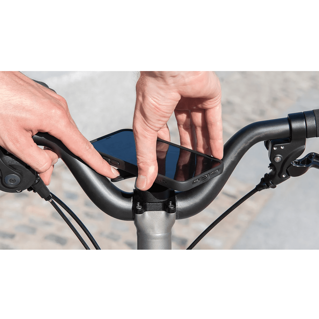 Introducing the Brompton Quad Lock® Phone Mount – a specially tailored phone mount meticulously designed for Brompton bikes.