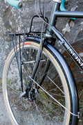 Stainless hardware, includes mounting tang and spacers so that you can clear the fork leg when you mount to the eyelets on the backside of your fork.